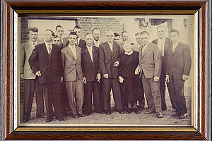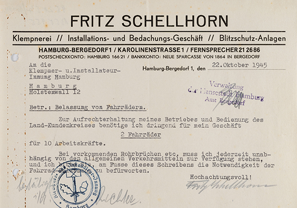 Zum Ende des Zweiten Weltkrieges fehlt es an nahezu allem – aber nicht am Durchhaltewillen der Mitarbeiter. Mit Fahrrädern kommen sie zur Arbeit und fahren teils auch damit zum Kunden.